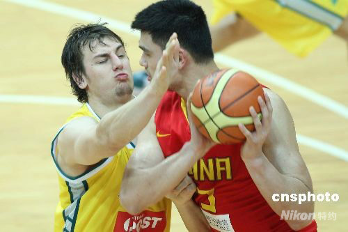 圖為姚明與對方博格特在場上上演“狀元對決”。中新社發(fā) 盛佳鵬 攝