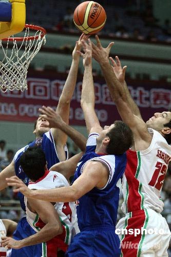 7月30日,正在江蘇南京進(jìn)行的國際籃聯(lián)2008鉆石杯男籃第二日比賽,伊朗隊(duì)72比70險(xiǎn)勝塞爾維亞隊(duì)(藍(lán))。圖為雙方在籃下激烈拼搶。中新社發(fā) 盛佳鵬 攝