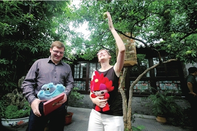 昨天,西城區(qū)旅游局為德國夫婦皮特和西蒙娜舉行了簡短的歡迎儀式,并向他們贈送奧運福娃和胡同游覽地圖。這對年輕的德國夫婦是本市首批入住奧運人家的外國游客。他們將在奧運人家居住五天,然后返回上海工作!