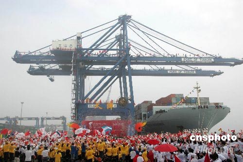 圖:奧運火炬在中國北方最大港口傳遞