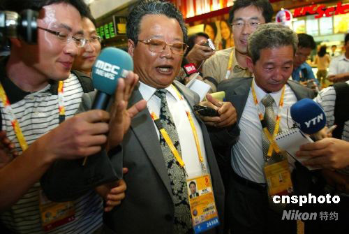 8月2日,朝鮮奧委會主席樸學(xué)先(中)率朝鮮奧運(yùn)代表團(tuán)飛抵北京首都國際機(jī)場。