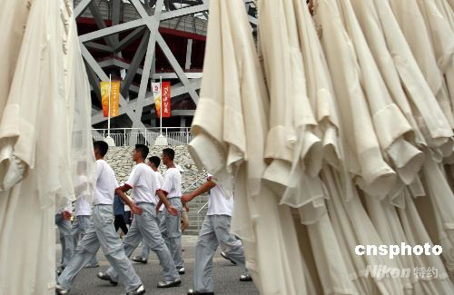 演員和服裝道具提前進入場內。 中新社發(fā) 杜洋 攝