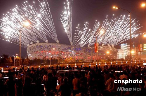 圖:奧運(yùn)主體育場(chǎng)“鳥巢”再次燃放煙花