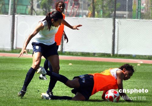 8月3日,巴西女足靈魂隊(duì)員瑪塔(左)與隊(duì)友在訓(xùn)練中。當(dāng)日,巴西女足隊(duì)員在沈陽(yáng)奧體中心訓(xùn)練場(chǎng)進(jìn)行訓(xùn)練。6日,巴西女足將在奧運(yùn)會(huì)女足比賽小組賽中對(duì)陣德國(guó)女足。中新社發(fā) 張宇 攝