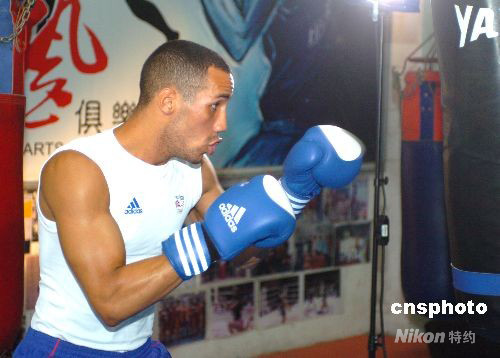 英國(guó)拳擊隊(duì)共有八名隊(duì)員參加北京奧運(yùn)會(huì),與古巴、俄羅斯等拳擊強(qiáng)國(guó)一比高下。圖為八月三日英國(guó)中量級(jí)選手詹姆斯·達(dá)格利在澳門備戰(zhàn)。 中新社發(fā) 畢永光 攝