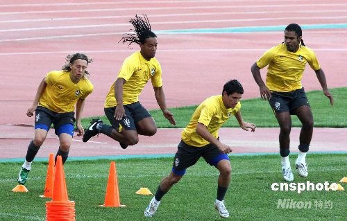 8月3日下午,巴西男足在沈陽鐵西體育場進行奧運會前的首次訓練。男足主力隊員羅納爾迪尼奧成為場上的焦點。中新社發(fā) 張宇 攝