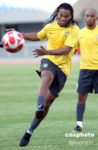 圖:羅納爾迪尼奧沈陽奧運(yùn)賽前訓(xùn)練