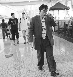 當(dāng)所有記者都在翹首以盼菲爾普斯出現(xiàn)時,記者在T3航站樓里面發(fā)現(xiàn)了一個熟悉的身影,“棋圣”聶衛(wèi)平。盡管老聶的形象還是那么鮮明、那么容易被認(rèn)出,但是當(dāng)他穿過記者包圍圈,走到另外一個出口尋找司機時,現(xiàn)場上百位記者愣是沒有一個人理他……盡管身 邊還是有人認(rèn)出了這位昔日的風(fēng)云人物,不時還有中年人在小聲討論,“這不是那個、那個誰嗎?”但是除了快報攝影記者,沒有一家媒體上前拍照……孤獨的聶棋圣獨自一手提著大包,一手拿著許開禎寫的那本揭露官場幕后真相的小說《墮落門》,在出口處等了整整10分鐘,才等到司機。