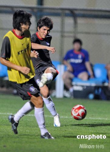 8月4日晚,韓國隊在秦皇島奧林匹克體育中心訓(xùn)練場進行首次夜訓(xùn)。在當(dāng)晚的訓(xùn)練中,韓國隊主要進行了隊員間的戰(zhàn)術(shù)、技術(shù)配合訓(xùn)練。8月7日晚,韓國隊將在秦皇島奧林匹克體育中心體育場首戰(zhàn)喀麥隆。 中新社發(fā) 劉學(xué)忠 攝