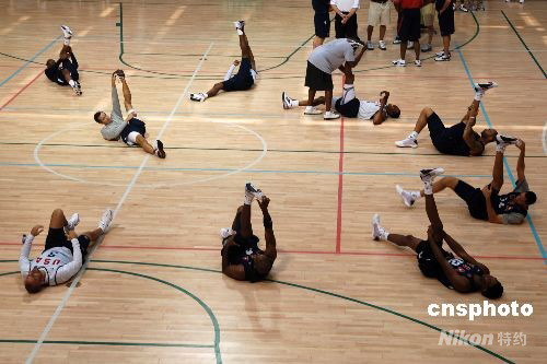 8月7日中午,美國男籃“夢八隊(duì)”在北京開始抵京后的首次訓(xùn)練。 中新社發(fā) 賴松 攝