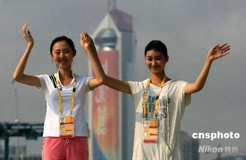 8月7日,青島迎來入夏以來最酷熱的天氣,奧帆賽頒獎禮儀小姐們在驕陽曝曬下進(jìn)行排練,模擬奧帆賽頒發(fā)獎牌的所有過程。按照要求,在長達(dá)幾十分鐘的排練時(shí)間里,她們一直面帶微笑,舉止大方彬彬有禮。一遍遍苦苦排練熱得女孩們滿臉汗珠,但沒人叫苦,展示青島女孩最美的一面。 中新社發(fā) 周青先 攝