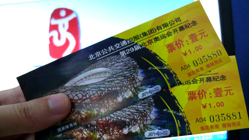 8月8日,2008北京奧運(yùn)會(huì)開(kāi)幕普通紀(jì)念車票開(kāi)始在北京市公交集團(tuán)所屬的全部公交線路上發(fā)售,乘客在京乘坐公交車時(shí)可以購(gòu)買。