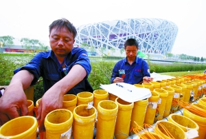 按標(biāo)準(zhǔn),用于鳥(niǎo)巢燃放的煙花,抽檢率高達(dá)50%,即每?jī)蓚(gè)成品出廠前,其中一個(gè)必須當(dāng)場(chǎng)試放。試放成品過(guò)關(guān),另一成品才能裝箱。(記者 王姝)