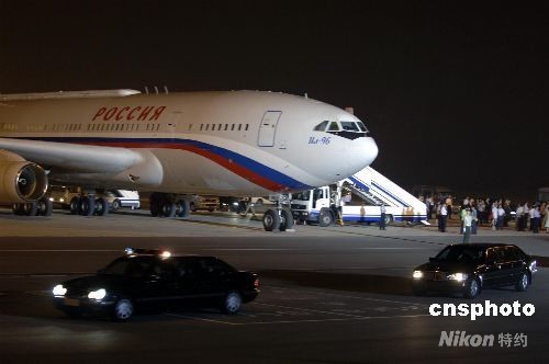 8月7日晚,俄羅斯總理普京抵達(dá)北京首都機(jī)場(chǎng),將參加奧運(yùn)會(huì)開(kāi)幕式。圖為其專車(右)從其專機(jī)前駛過(guò)。中新社發(fā) 王東明 攝