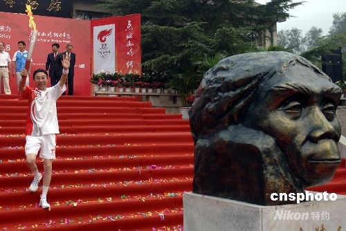 8月8日清晨7時(shí),第29屆夏季奧運(yùn)會(huì)的火炬,從周口店遺址出發(fā),開(kāi)啟最后一天的傳遞。圖為“笑星”馮鞏在北京人發(fā)源地周口店傳遞奧運(yùn)火炬。 中新社發(fā) 王東明 攝
