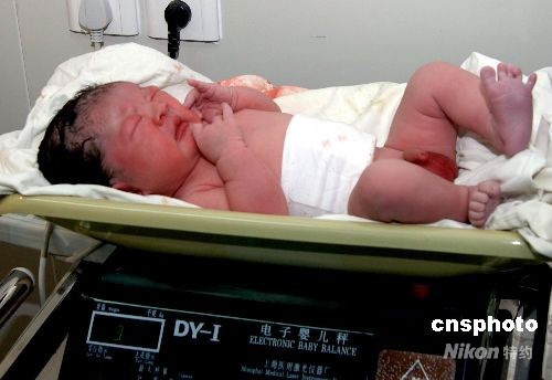 圖:護(hù)士為奧運(yùn)寶寶稱體重