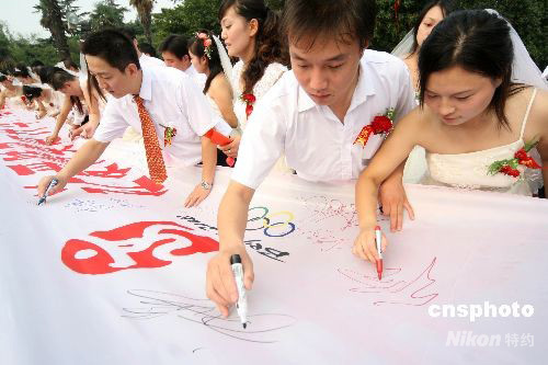 圖:河南許昌舉行集體婚禮 情緣奧運(yùn)