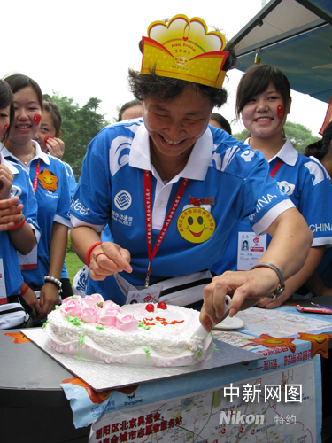 圖:奧運(yùn)志愿者開幕式當(dāng)天迎來五十歲生日