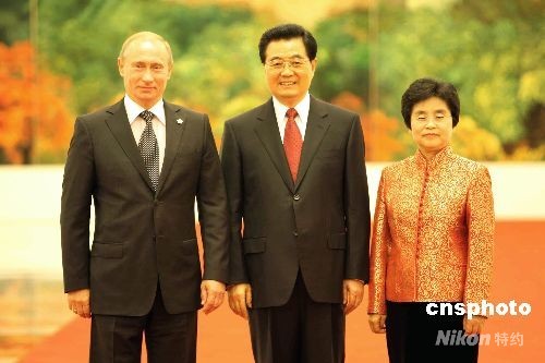 圖:胡錦濤夫婦歡迎普京出席北京奧運會