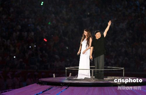 8月8日晚,北京奧運(yùn)會開幕,中國著名男歌手劉歡和英國著名女歌星莎拉·布萊曼(Sarah Brightman)在“鳥巢”中央共同演唱北京奧運(yùn)會開幕式主題歌《you and me》。 中新社發(fā) 任晨鳴 攝