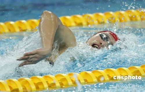 圖:中國(guó)選手張琳在男子400米自由泳預(yù)賽中