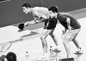 昨天下午,國(guó)乒男隊(duì)訓(xùn)練了近兩個(gè)小時(shí),比原定計(jì)劃多了差不多一小時(shí)———當(dāng)然這不是照顧東道主,而是國(guó)乒隊(duì)的運(yùn)氣不錯(cuò)。“我們很幸運(yùn)。下午3點(diǎn)我們正要離開時(shí),發(fā)現(xiàn)有一張空球桌,還可以再訓(xùn)練一小時(shí),所以我們又練了45分鐘。我們練習(xí)了發(fā)球和多回合作戰(zhàn),盡量更適應(yīng)球速和空調(diào)風(fēng)。運(yùn)動(dòng)員在賽場(chǎng)上精力一般比較集中。我們不進(jìn)行任何針對(duì)性練習(xí),只是保證他們狀態(tài)良好和動(dòng)作流暢!(孫海光)