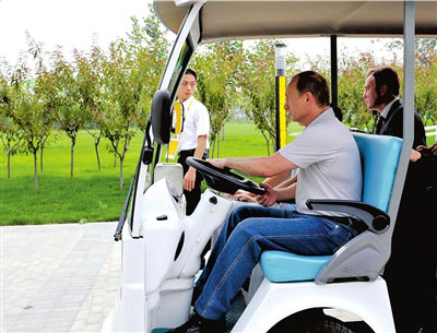 15分鐘后,普京坐上一輛牌號為“奧運村A011”的電瓶車駕駛員位置,工作人員向他示范了一下車輛的發(fā)動和關(guān)閉后,普京老練地駕車毫無聲息地開向奧運村里的和平友誼墻。抵達后,普京在墻上簽下自己的名字,然后駕車駛進保衛(wèi)嚴密的奧運村運動員公寓,前去看望俄羅斯運動員。