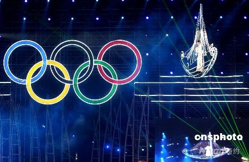 第29屆奧林匹克運(yùn)動(dòng)會(huì)帆船比賽啟動(dòng)儀式8月9日晚在青島舉行,來自62個(gè)國家和地區(qū)的運(yùn)動(dòng)隊(duì)代表出席。藝術(shù)家乘“電動(dòng)帆船”從天而降在空中進(jìn)行演唱。中新社發(fā) 趙振清 攝