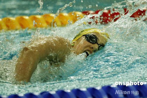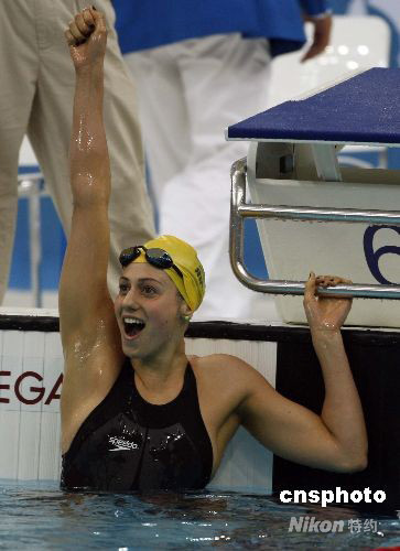 8月10日,北京奧運會女子400米個人混合泳決賽中,澳大利亞選手賴斯打破世界紀(jì)錄并獲得冠軍。賴斯創(chuàng)造的新世界紀(jì)錄為4分29秒45。原世界紀(jì)錄是美國選手霍夫在今年6月底創(chuàng)造的4分31秒12。 中新社發(fā) 杜洋 攝