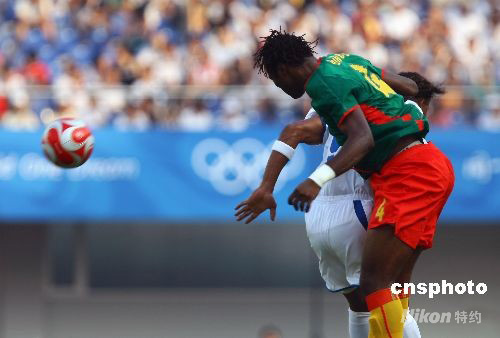 8月10日,北京奧運(yùn)會男足預(yù)賽,在秦皇島奧體中心“非洲雄獅”喀麥隆對陣洪都拉斯。 中新社發(fā) 劉新 攝