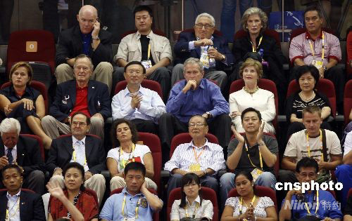 圖:布什總統(tǒng)現(xiàn)場觀看中美男籃大戰(zhàn)