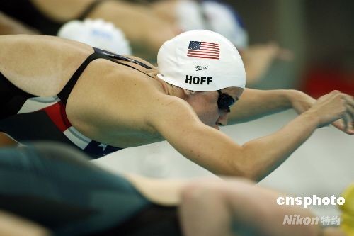 在女子400米自由泳比賽中,美國(guó)名將凱蒂·霍夫以4分03秒71的成績(jī)刷新了該項(xiàng)目的奧運(yùn)會(huì)紀(jì)錄。