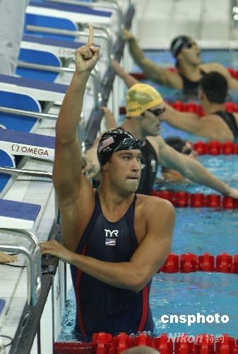 8月10日,美國(guó)游泳隊(duì)在北京奧運(yùn)會(huì)預(yù)賽中刷新男子4乘100米自由泳接力世界紀(jì)錄,成績(jī)?yōu)?分12秒23。中新社發(fā) 杜洋 攝