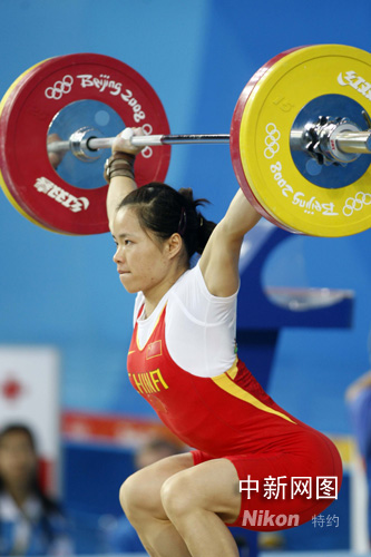 中新網(wǎng)8月11日電 在北京奧運(yùn)會(huì)舉重女子58公斤級(jí)決賽中,衛(wèi)冕冠軍中國(guó)選手陳艷青輕松奪得金牌,并打破挺舉、總成績(jī)奧運(yùn)會(huì)紀(jì)錄。她的成績(jī)是抓舉106公斤,挺舉138公斤,總成績(jī)?yōu)?44公斤。