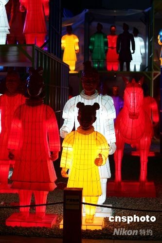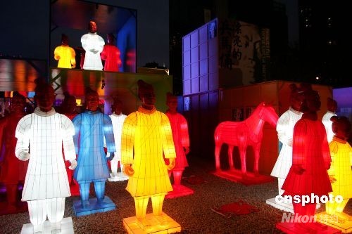 北京CBD內(nèi)充滿時(shí)尚感的世貿(mào)天階奧運(yùn)文化廣場上,102尊兵馬俑彩燈擺出氣勢恢弘的陣形。不是遠(yuǎn)自秦朝的陶土塑就,它們周身光彩奪目;不是身披鎧甲充滿殺氣,它們攜老扶幼,盡顯家庭歡樂。一個(gè)個(gè)燈彩透著歷史的深邃,也投身于眼前的奧運(yùn)狂歡。從即日起至8月24日,他們將以特殊的方式為人們講述中華文化的源遠(yuǎn)流長。中新社發(fā) 富田 攝