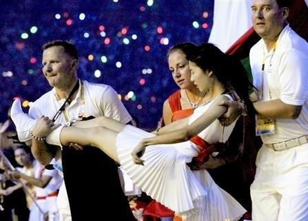 忍高溫開幕式歡跳2小時暈倒白衣MM。