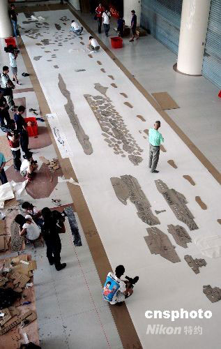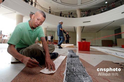 八月十二日上午,世界著名華裔藝術(shù)家、北京奧運(yùn)會(huì)視覺(jué)特效藝術(shù)總設(shè)計(jì)蔡國(guó)強(qiáng)先生在福建泉州準(zhǔn)備他的又一新作。這次蔡國(guó)強(qiáng)要把在北京奧運(yùn)會(huì)開(kāi)幕式上令世界人民印象深刻的古今同步、跨越時(shí)空“二十九個(gè)腳印”呈現(xiàn)在家鄉(xiāng)人面前。中新社發(fā) 傅丹丹 攝