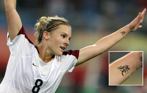 圖:美國奧運(yùn)女足選手的漢字紋身