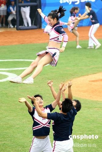 8月13日,2008北京奧運棒球賽在五棵松體育中心舉行,中場休息時大會安排啦啦隊表演熱鬧非常。中新社發(fā) CNAsports 攝