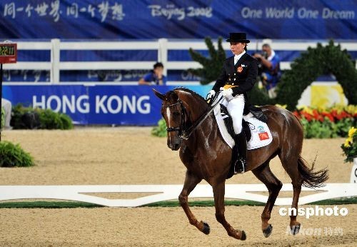 八月十三日晚,中國(guó)選手劉麗娜在香港沙田奧運(yùn)馬術(shù)主賽場(chǎng)輕駕坐騎優(yōu)雅上場(chǎng),這是中國(guó)選手首次參賽奧運(yùn)會(huì)馬術(shù)項(xiàng)目。當(dāng)日,奧運(yùn)馬術(shù)比賽進(jìn)行盛裝舞步團(tuán)體賽和個(gè)人資格賽(大獎(jiǎng)賽科目)進(jìn)行首日賽事。中新社發(fā) 洪少葵 攝