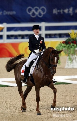 圖:中國(guó)選手劉麗娜在盛裝舞步賽上登場(chǎng)