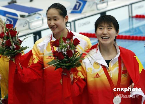 8月14日上午,中國19歲小將劉子歌以2分04秒18打破世界紀(jì)錄,獲得北京奧運(yùn)會女子200米蝶泳冠軍。另一名中國只有18歲的小將焦劉洋奪得亞軍。中國泳壇兩朵小花雙雙戰(zhàn)勝澳大利亞選手,奪金摘銀。 中新社發(fā) 杜洋 攝
