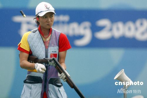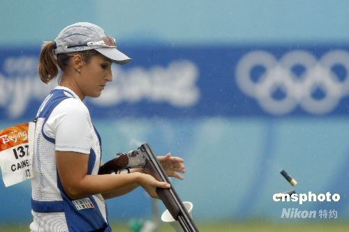 8月14日下午,北京奧運(yùn)會(huì)女子飛碟雙向決賽在北京射擊場(chǎng)飛碟靶場(chǎng)舉行,世界杯總決賽冠軍中國(guó)選手魏寧無(wú)緣三甲名列第六。意大利選手基婭拉-卡伊內(nèi)羅通過(guò)單發(fā)決賽擊敗美國(guó)選手羅德-金伯莉和德國(guó)選手克里斯蒂娜-布林克爾,以93中獲得冠軍。 中新社發(fā) 盛佳鵬 攝