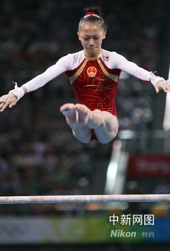 第二個項目高低杠是柳金的“拿手好戲”,身形修長的她杠上動作非常優(yōu)美,團體決賽中她在這個項目上拿到過十六點九的最高分,但今天的比賽中她落地有些不穩(wěn),得到十六點六五分!叭芘酢毙ざ鳌ぜs翰遜在這個自己的唯一弱項上只拿到十五點二七五分。江鈺源克服了跳馬失利的陰影,高低杠上發(fā)揮正常,得到十五點八七五分。楊伊琳則以行云流水的動作和優(yōu)美的空中姿態(tài)拿到十六點七二五的單項最高分,總分三十一點九00力壓柳金暫列第一。