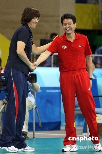 賽后,美國隊(duì)主教練郎平主動(dòng)上前與中國隊(duì)主教練陳忠和握手。