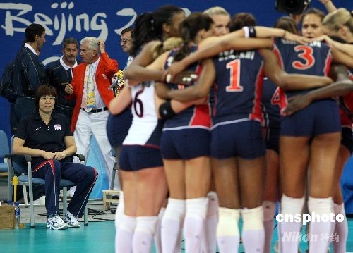 賽后,美國隊(duì)熱烈慶祝時(shí),主教練郎平沉默地坐在一旁。