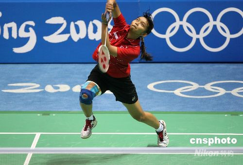 8月16日,中國選手盧蘭在北京奧運會羽毛球女單銅牌決賽中以1:2負于印尼選手瑪麗亞·克麗斯廷·尤利安蒂,無緣銅牌。 中新社發(fā) 武仲林 攝