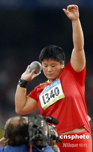 8月16日,中國選手鞏立姣無緣北京奧運(yùn)會女子鉛球比賽獎牌。中新社發(fā) 盛佳鵬 攝