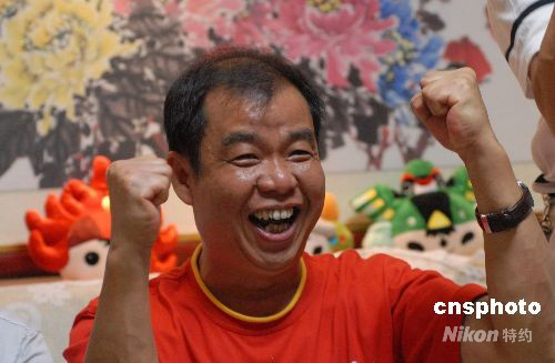 林丹父親在福建省龍巖市上杭縣家中為兒子吶喊助威。 中新社發(fā) 林福達(dá) 攝