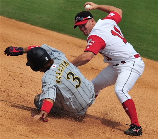 8月18日,在五棵松棒球場(chǎng)舉行的北京奧運(yùn)會(huì)棒球預(yù)賽中,日本隊(duì)以1比0戰(zhàn)勝加拿大隊(duì)。
